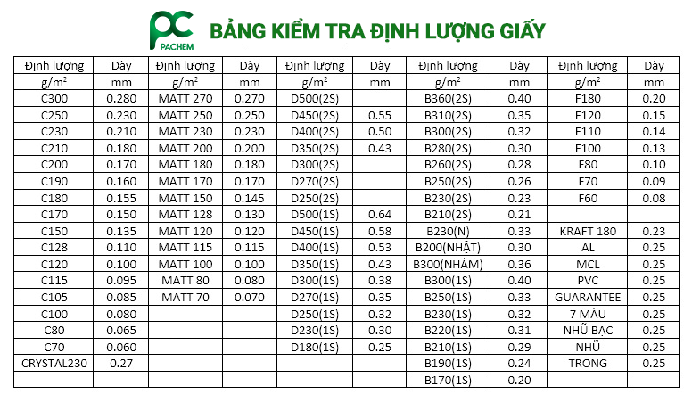 Thực tế thì các nhà sản xuất giấy đều ghi sẵn thông số định lượng, nên bạn có thể nhận biết dễ dàng. Tuy nhiên, các chỉ số định lượng thường xảy ra sai số do các yếu tố khách quan như thời tiết, độ ẩm, nhiệt độ không khí hoặc chủ quan như kỹ thuật sản xuất (cán màng mờ/bóng...)